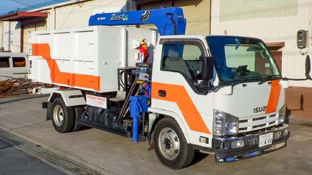 クレーンがあるのでフレコンの積込みもOK。積載重量は2,500㎏です。